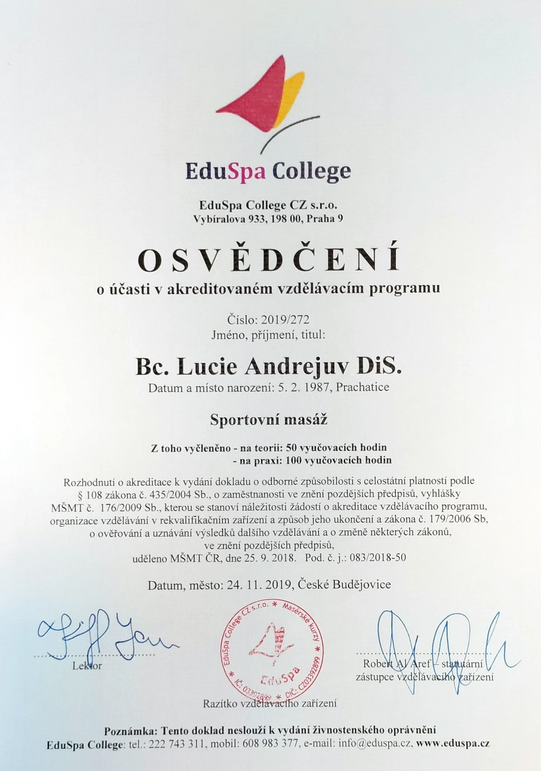 Jmenuji se Lucie Andrejuv a jsem mobilní masérka. Věřím, že každý si zaslouží chvíli klidu, a proto přináším profesionální péči až k vám domů. Ať už potřebujete uvolnit napětí, načerpat energii, nebo si jen dopřát čas pro sebe – jsem tu pro vás.